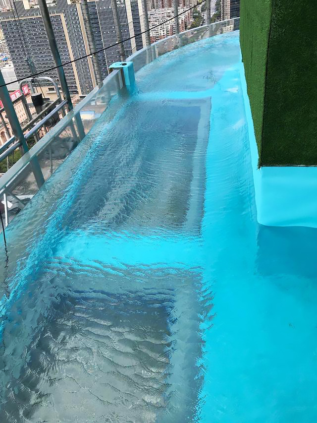 Piscina infinita acrílica he ise ojeporuha chapa acrílica piscina ykére, ha opaite condición piscina ryepýpe ikatu ojehecha lado guive. Pe permeabilidad yvate orekóva umi chapa acrílica ojapo umi hénte oñandu ndaiporiha límite ni marco. Pe dureza ha plasticidad orekóva umi chapa acrílica oheja umi chapa acrílica oñeforma oimeraẽ forma-pe, ndaha'éi limitado umi chapa recta, forma aerodinámica, arco ha triángulo, opavave ikatúva ojehupyty. Umi panel acrílico grueso oreko dureza porã ha ikatu oaguanta presión mbarete y rehegua ha oñesuspende aire-pe. Umi tapicha onata piscina colgante-pe ikatu ohecha condición interna piscina-pe edificio yvate guýgui.